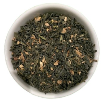 Thé vert de Chine* (69,5%), épices (cannelle*, gingembre*, cardamome*, clous de girofle*) (30,5%).