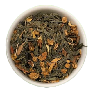 Thé vert sencha de Chine aromatisé à la pomme et à la vanille. Un parfum d'automne, doux et fruité.